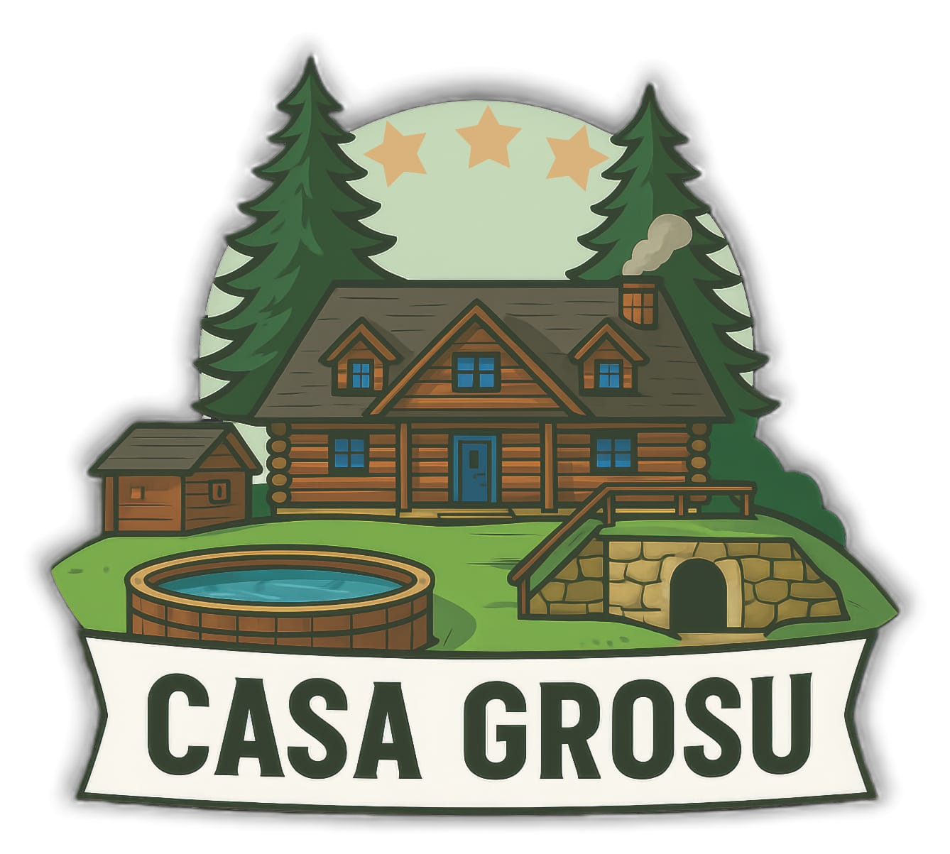 Casa Grosu este inima locației — o casă tradițională din lemn masiv, cu living spațios, șemineu și o atmosferă caldă ce te transportă în timp. Fiecare colț poartă amprenta meșteșugului maramureșean autentic.